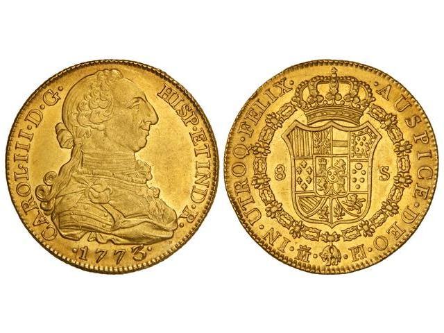 Spanish Monarchy: Charles Iii - 8 Escudos. 1773. MADRID. P.J. Punto entre ensayadores. Brillo original. MUY ESCASA. Cal-53; XC-722 var. SC.