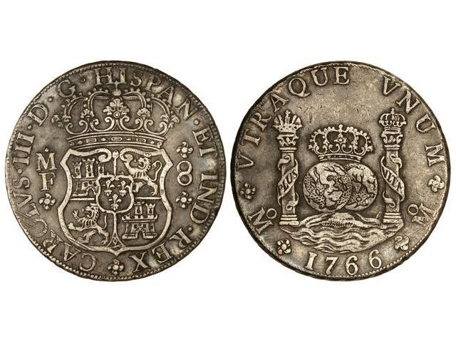 Spanish Monarchy: Charles Iii - 8 Reales. 1766. MÉXICO. M.F. Columnario. Restos de pátina irisada. (Rayitas de ajuste de peso). Cal-904. MBC+.