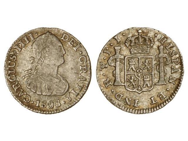 Spanish Monarchy: Charles Iv - 1/2 Real. 1808. POTOSÍ. P.J. Pátina. ESCASA. Cal-1325. MBC+.