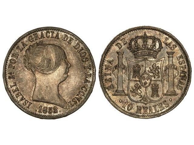 Spanish Monarchy: Elisabeth Ii - 10 Reales. 1852. BARCELONA. Bonita pátina. Cal-207. EBC-.