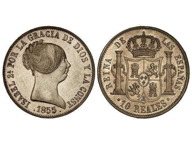 Spanish Monarchy: Elisabeth Ii - 10 Reales. 1855/4. MADRID. RARA EN ESTA CALIDAD. Cal-225 var. sobrefecha. EBC+.