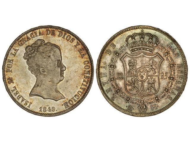 Spanish Monarchy: Elisabeth Ii - 20 Reales. 1849. MADRID. C.L. Bonita pátina. (Leve golpecito en canto). Cal-167. EBC.
