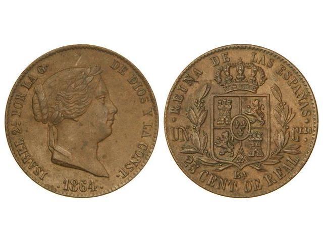 Spanish Monarchy: Elisabeth Ii - 25 Céntimos de Real. 1864. BARCELONA. MUY ESCASA. Cal-588. EBC/EBC-.
