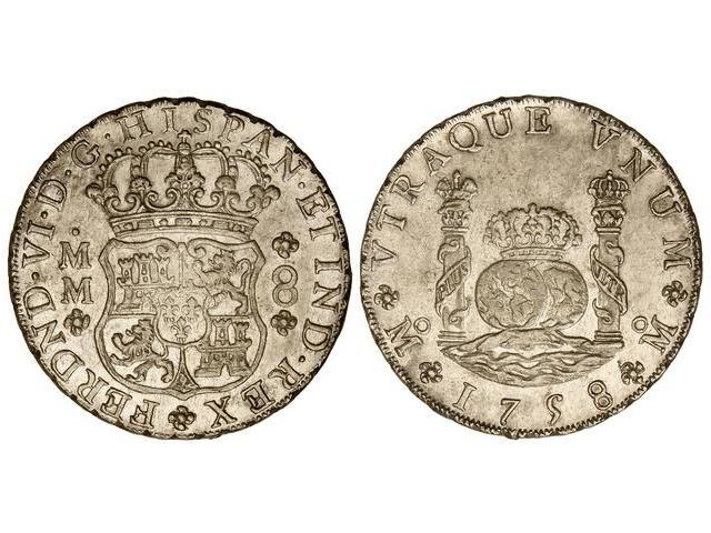Spanish Monarchy: Ferdinand Vi - 8 Reales. 1758. MÉXICO. M.M. Plano brillo original. Acuñación ligeramente floja en reverso. MAGNÍFICO EJEMPLAR. Cal-343. SC-.