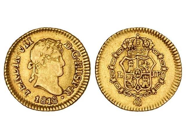 Spanish Monarchy: Ferdinand Vii - 1/2 Escudo. 1818. LIMA. J.P. MUY ESCASA. Cal-355. MBC.
