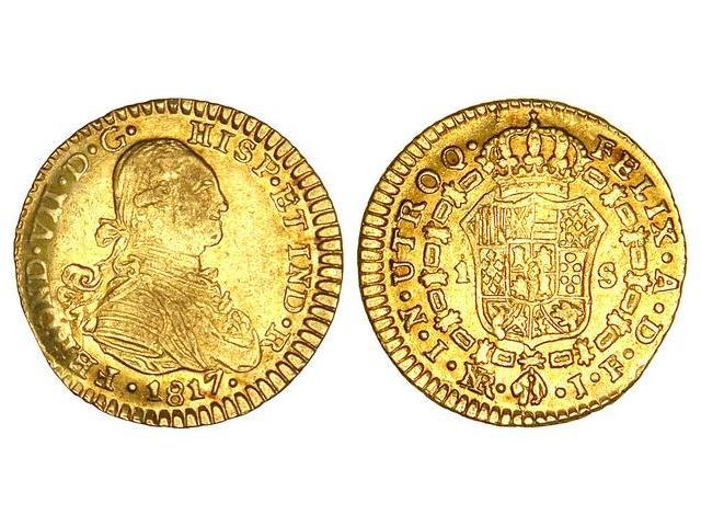 Spanish Monarchy: Ferdinand Vii - 1 Escudo. 1817. NUEVO REINO. J.F. Busto de Carlos IV. Restos de brillo. RARA. Cal-334. EBC-.