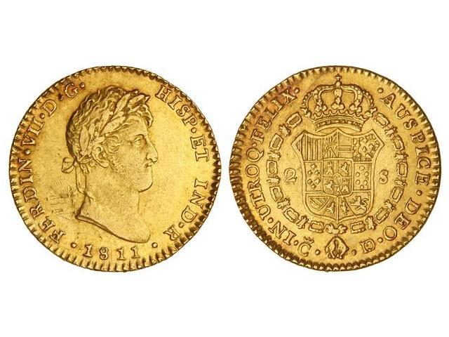 Spanish Monarchy: Ferdinand Vii - 2 Escudos. 1811. CÁDIZ. I.C. C del ensayador invertida. Parte de brillo original. RARA. Cal-179. EBC-/EBC.