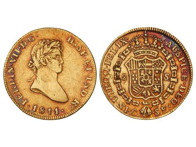 Spanish Monarchy: Ferdinand Vii - 2 Escudos. 1811. CATALUNYA. S.F. Cabeza pequeña. (Leves rayitas en anverso). MUY RARA. Cal-185. (MBC+).