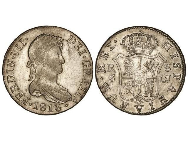 Spanish Monarchy: Ferdinand Vii - 8 Reales. 1816. SEVILLA. C.J. (Acuñación algo floja. Rayitas). Cal-640. MBC+.