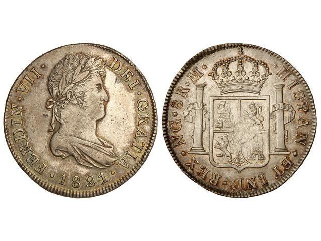 Spanish Monarchy: Ferdinand Vii - 8 Reales. 1821. GUATEMALA. M. Brillo y pátina originales. Acuñación algo floja en escudo del reverso. Cal-470. EBC.
