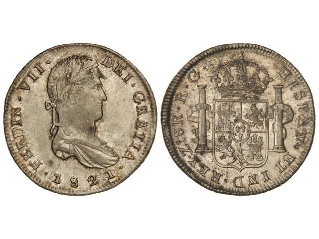 Spanish Monarchy: Ferdinand Vii - 8 Reales. 1821. ZACATECAS. R.G. Restos de brillo original. Cal-697. EBC-/EBC.