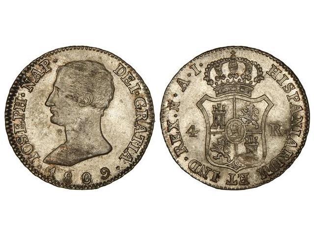 Spanish Monarchy: Joseph Napoleon - 4 Reales. 1809. MADRID. A.I. Brillo original. Suave pátina. (Pequeños defectos de acuñación en reverso). Cal-53. EBC+.
