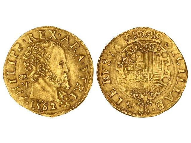 Spanish Monarchy: Philip Ii - 1 Escudo. 1582. NÁPOLES. GR/VP. 3,37 grs. AU. MUY ESCASA. Vti-383. EBC-.