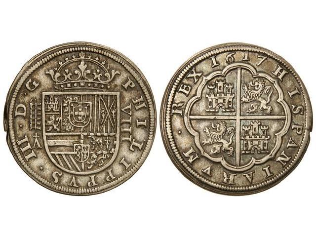 Spanish Monarchy: Philip Iii - 8 Reales. 1617. SEGOVIA. Anv.: Cinco flores de lis en escudo. Acueducto de dos pisos de cinco arcos. Ensayador . Cal-156. EBC-.
