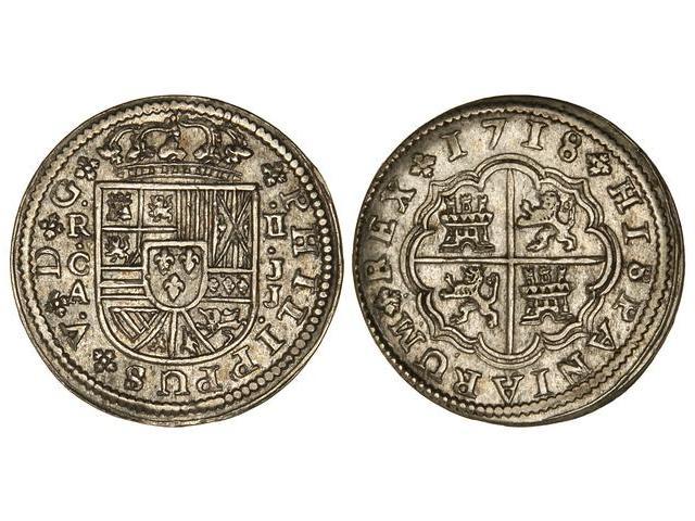 Spanish Monarchy: Philip V - 2 Reales. 1718. CUENCA. J.J. Cal-1161. EBC-.