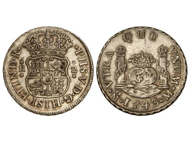 Spanish Monarchy: Philip V - 2 Reales. 1743. MÉXICO. M. Columnario. Cal-1294. EBC-.