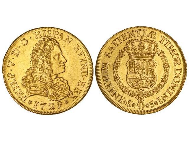 Spanish Monarchy: Philip V - 8 Escudos. 1729. SEVILLA. Anv.: PHILP... (Ligeramente limpiada). RARA. Cal-194; XC-526. EBC-.