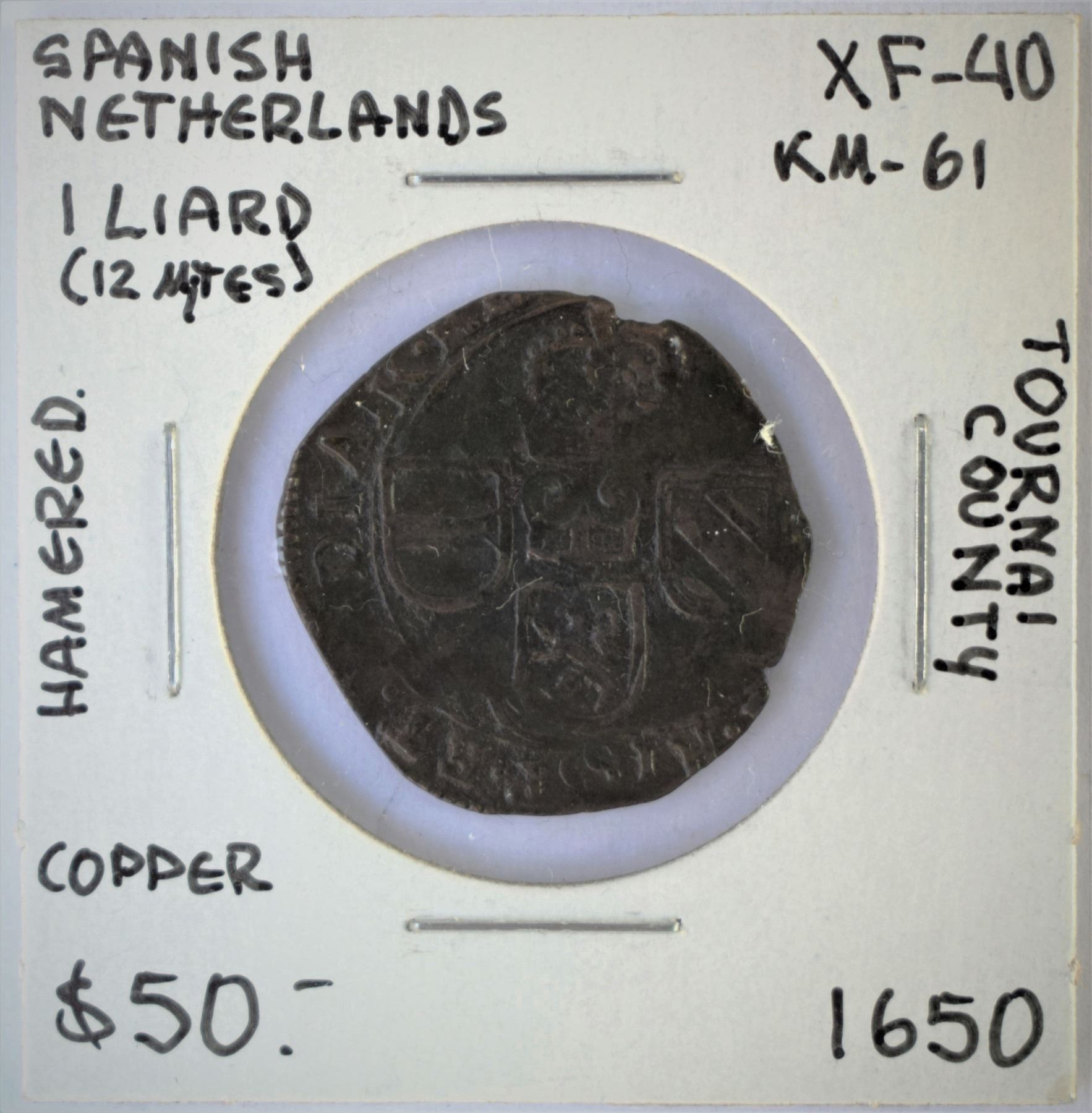 Spanish Netherland, 1 Liard (12 Mites) 1650 Issued Copper Coin KM #61