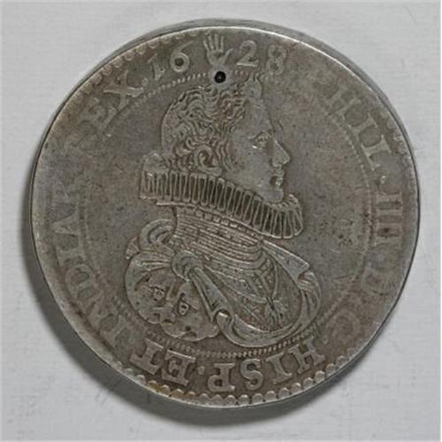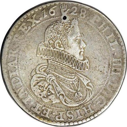 <B>Philip IIII Triple Ducaton 1628/7 Antwerp,</B></I> KM58.1, Davenport 4442, nice nearly VF, tiny attempted hole above Philip's head, planchet flaw on the reverse. Despite the minor blemishes this is an attractive example of this incredibly thick and heavy (91 grams!) type. Very rare, 2 Ducatons are occasionally available in the market, but this is the first triple that we have encountered.<BR><BR><b>Shipping:</b> Coins & Currency (<a target="_blank" href="http://www.heritageauctions.com/common/shipping.php">view shipping information</a>)