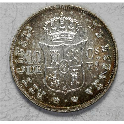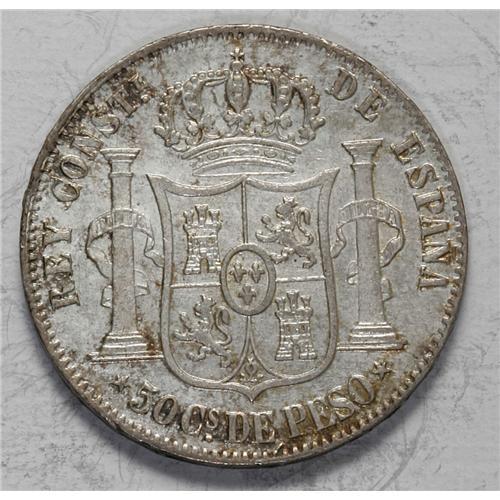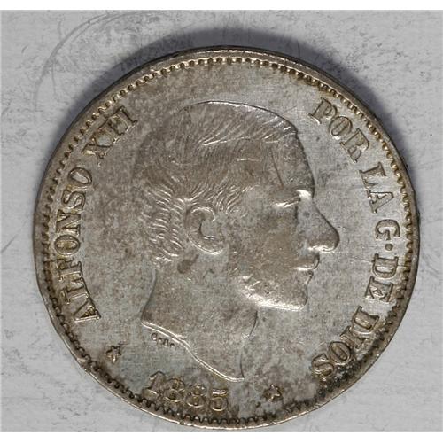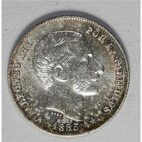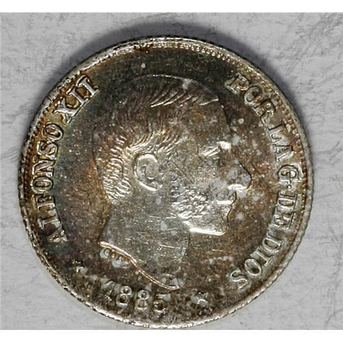 <B>Spanish Philippines. Alfonso XII silver coins:</B></I> 10 Centimos 1885, KM-148, UNC with pretty blue and gold toning; 20 Centimos 1885, KM-149, UNC, mostly brilliant; 50 Centimos 1885, KM-150, AU, lightly toned and attractive. <BR><I>From the Monedas Oro Collection</B></I><BR><BR><b>Shipping:</b> Coin/Currency (<a target="_blank" href="http://www.heritageauctions.com/common/shipping.php">view shipping information</a>)