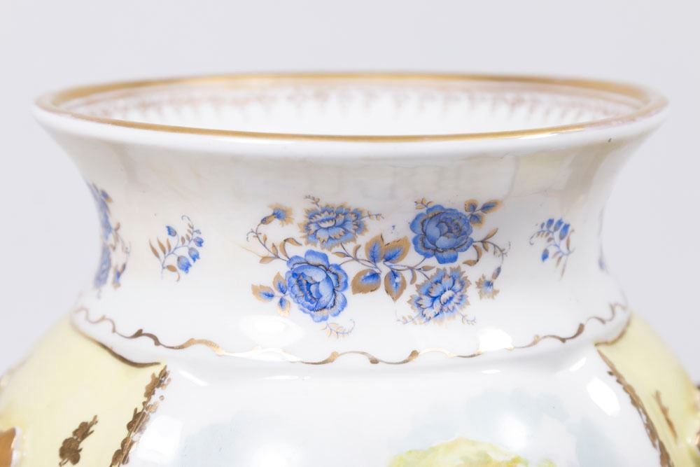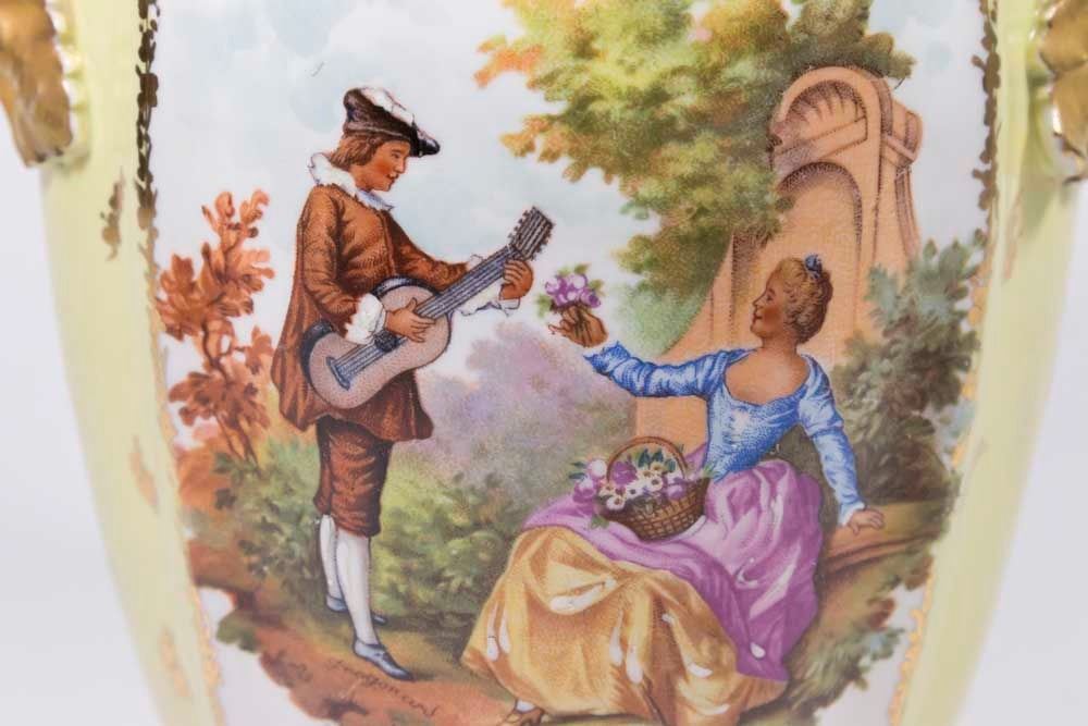 With Boucher style romantic scene. Gilt handles. Approx. 10 1/2" H. (6096)