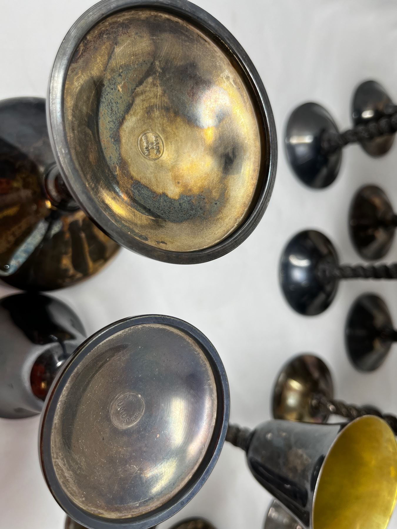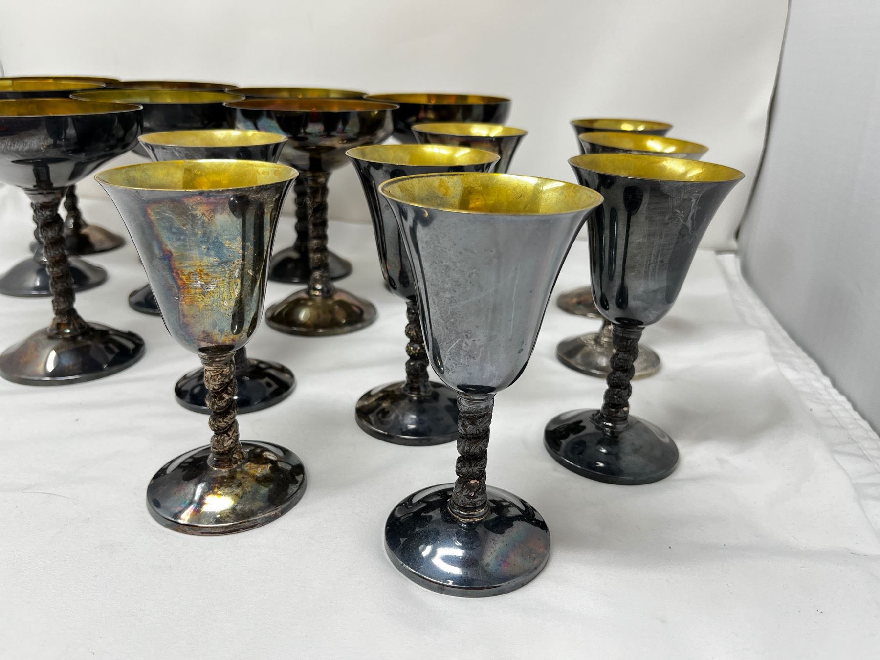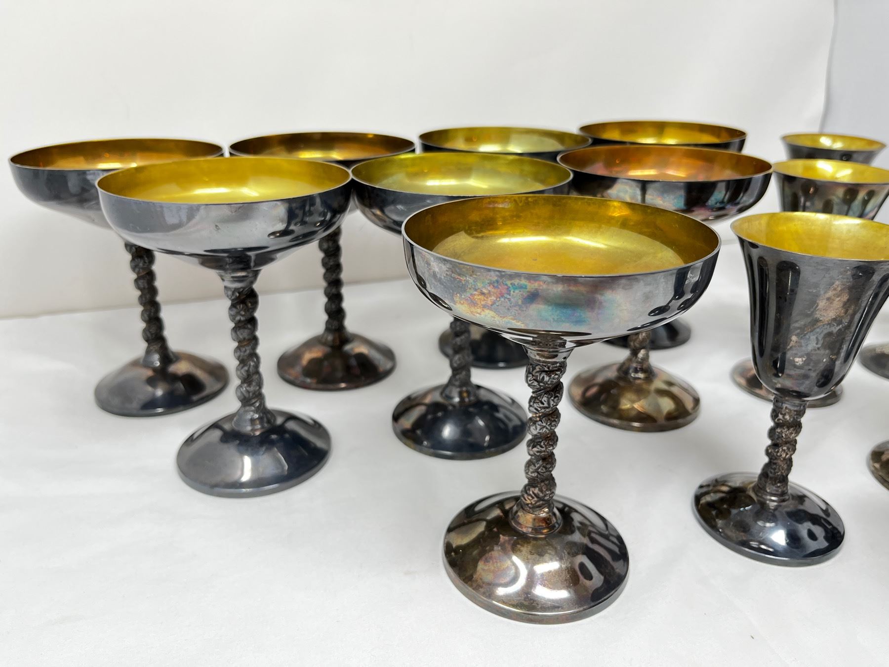 16 pieces total with 8 each of the cups and goblets. Twisted leaf stem pattern.