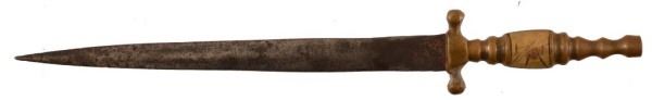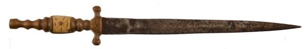 This type of knife was popular as a back-up weapon on the Colonial frontier. It is Spanish style, but could have been made in Mexico or the Philippines.