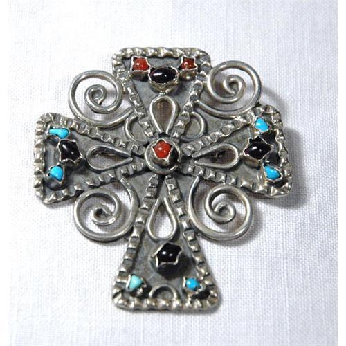 Large Spanish Style Sterling Multi Stone Maltese Cross. This is