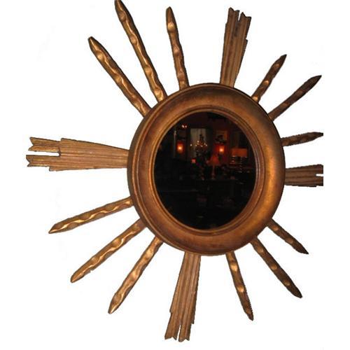 </font></strong>Spanish sunburst mirror in hand carved, gold leafed wood with the original mercury glass.</font>