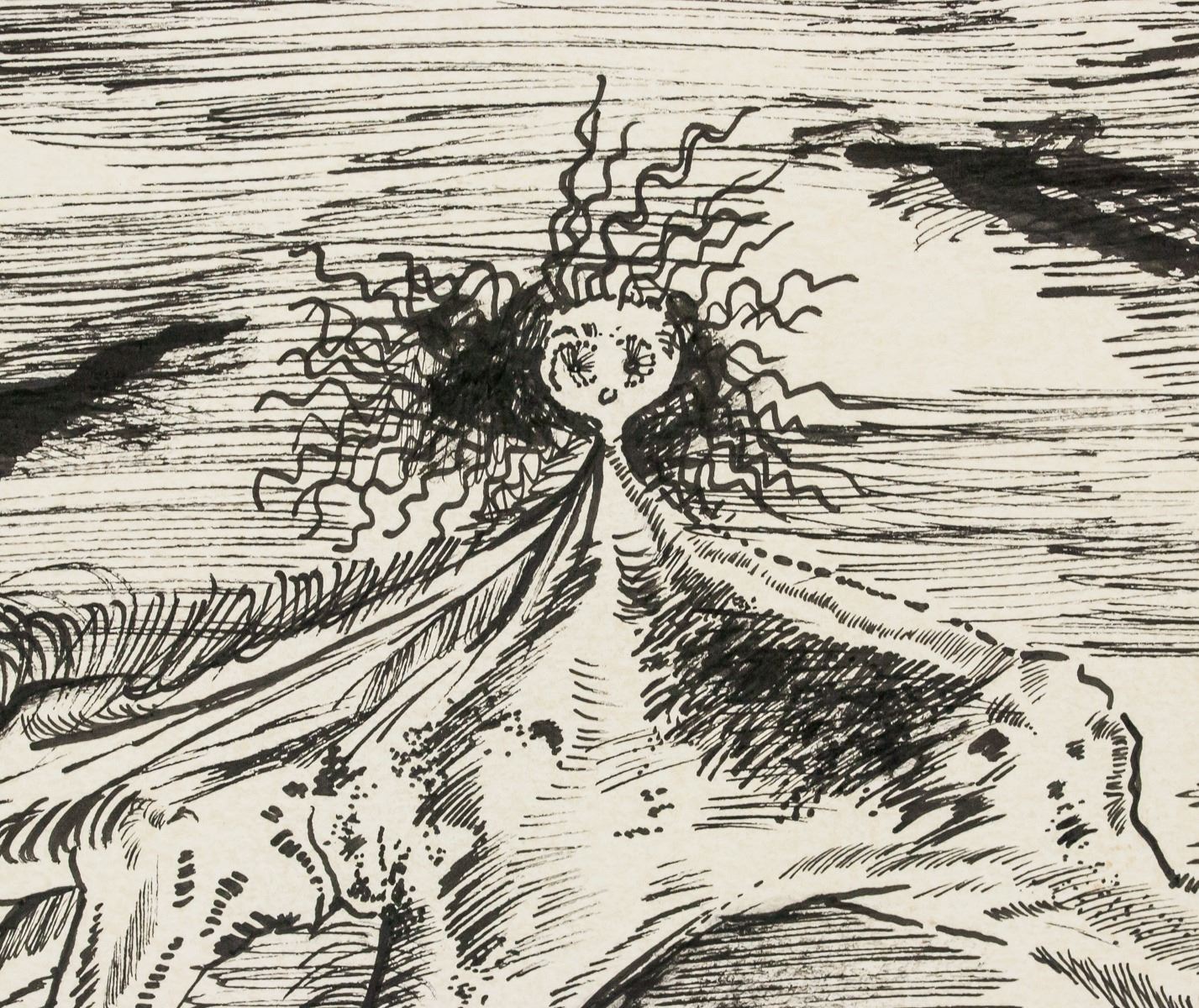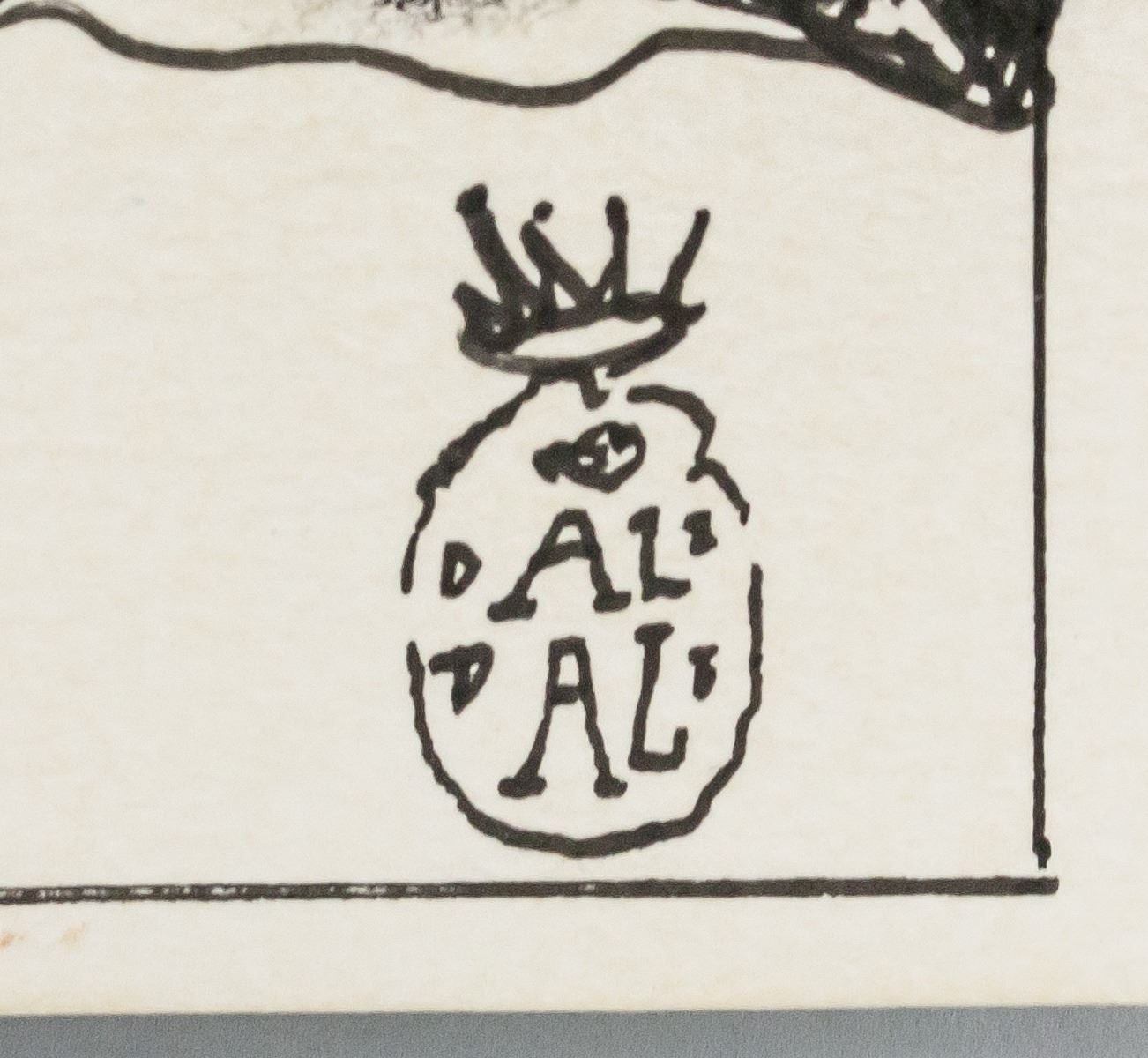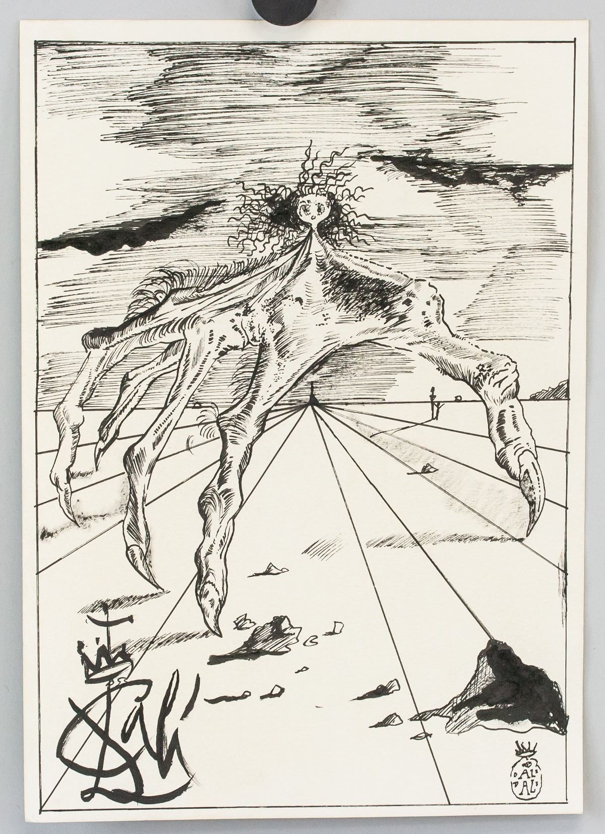 Ink on paper. Featuring surrealist composition of a spider-hand with a head on top. Signed "Dali" in the bottom left corner. 29.5 x 21 cm (11.6 x 8 in). Provenance: This lot carries limited provenance from an Upper New York estate