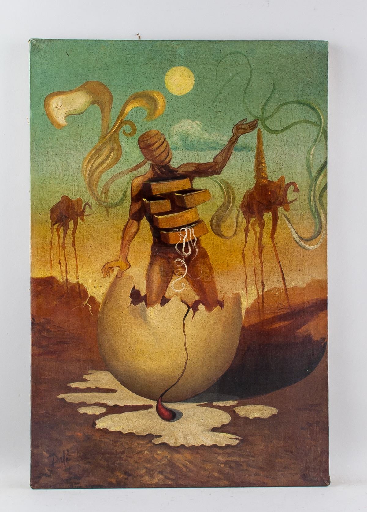 Oil on stretched canvas. Featuring surrealistic figure. Signed Dali on the lower left corner. Attributed to Salvador Dali (Spanish, 1904-1989). 60 x 40 cm (23.6 x 15.7 inches)