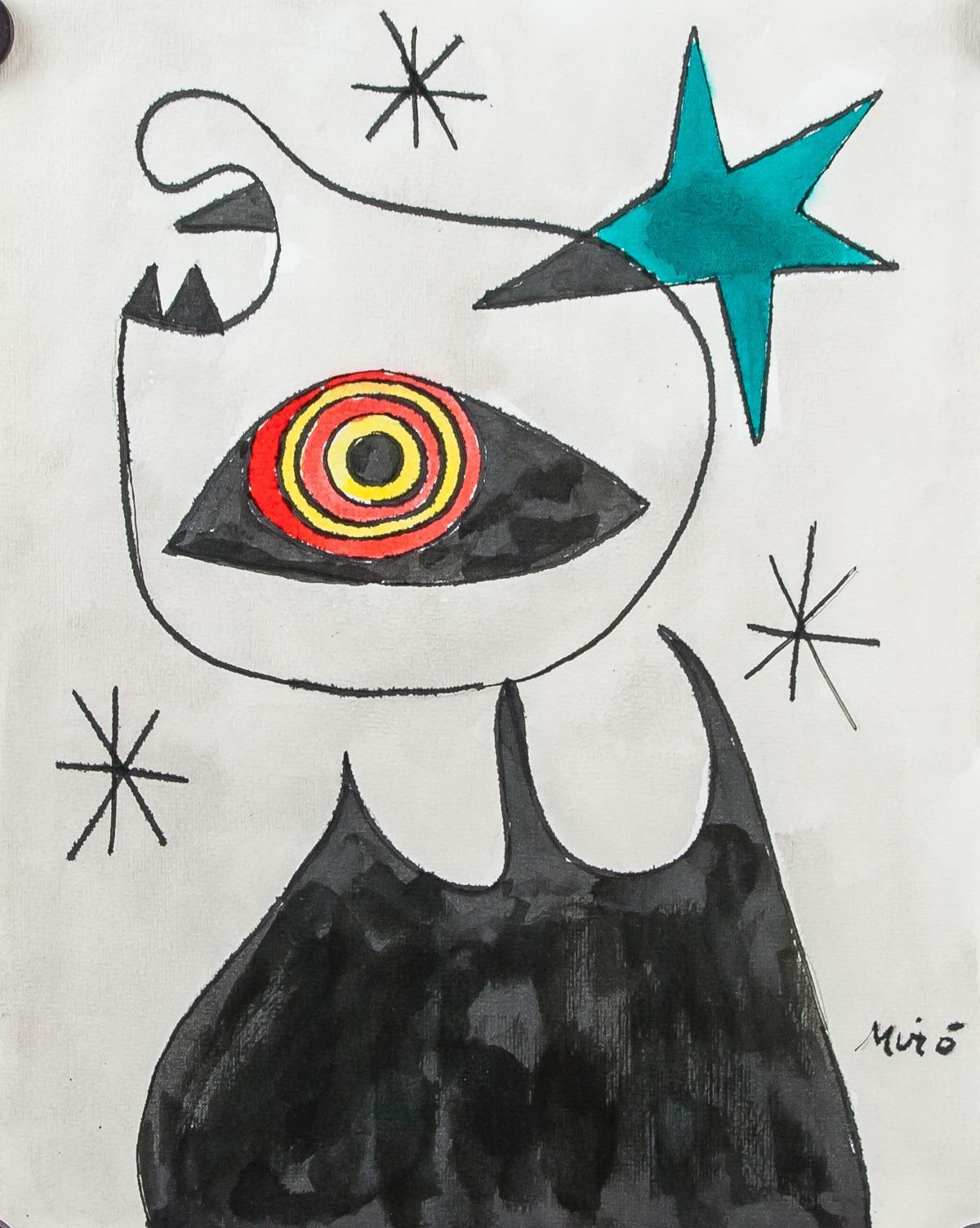 Watercolor on paper. Featuring a surrealist figure and composition. Signed Miro on the lower right corner. 27 x 21.5 cm (10.6 x 8.5 inches). Provenance: This lot carries limited provenance from an Upper New York estate