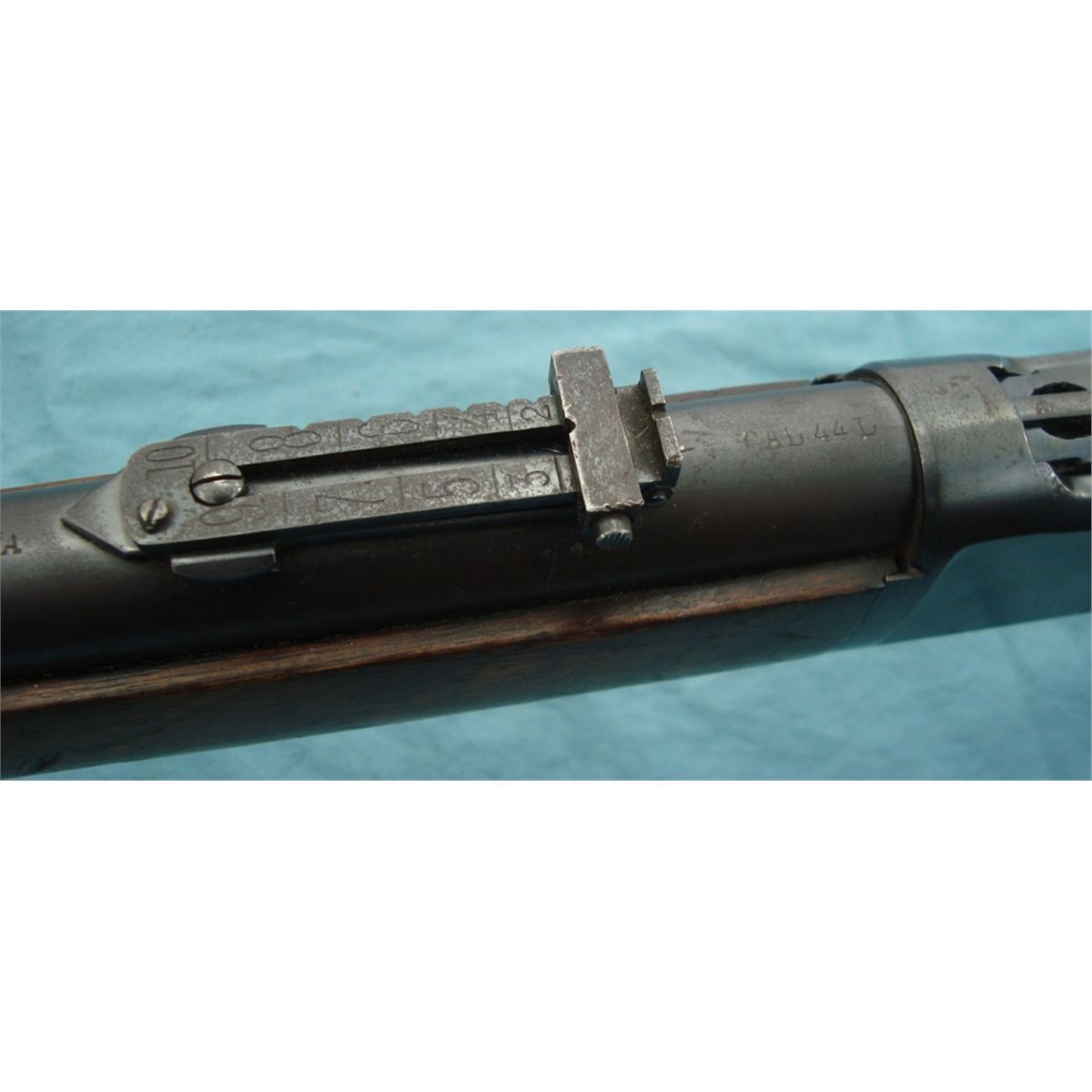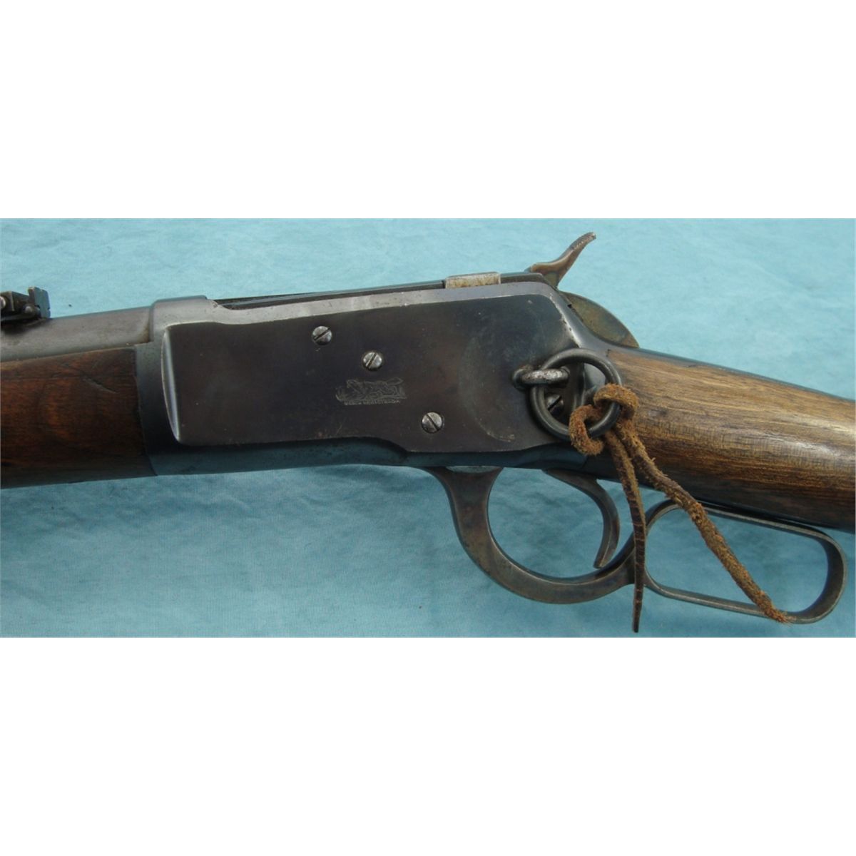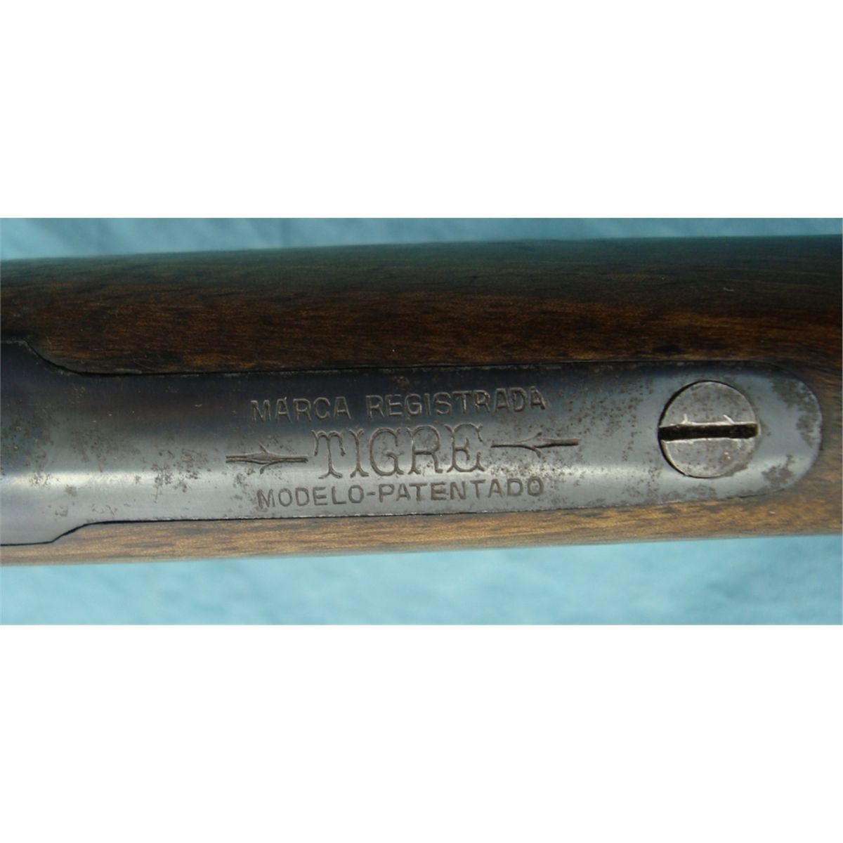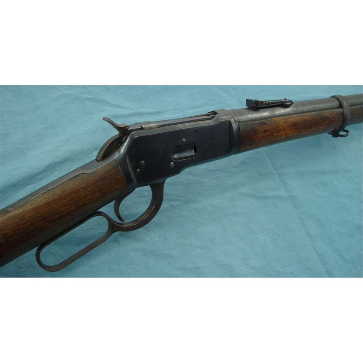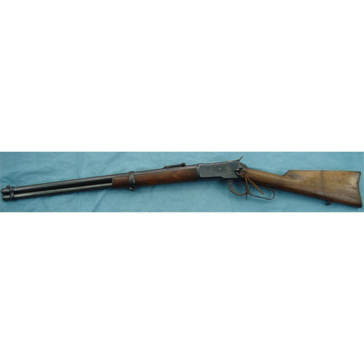 #25681; 44-40 w/22" bbl. & bright bore. Spanish copy of Winchester 1892 Carbine. Metal is peppered w/light surface rust from poor storage. Trigger & lever show original case colors. Mechanically good. Stock is solid showing nicks & dents.