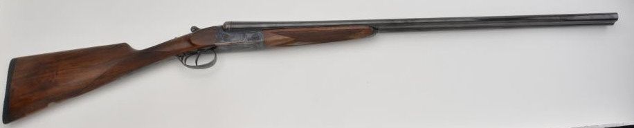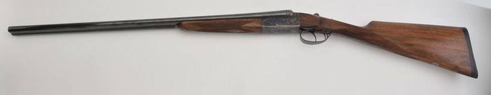 Spanish Ugartichea SxS hammerless shotgun with ejectors, double triggers, 28 gauge, 28” barrels, blue and case hardened finish, checkered wood stocks, hard rubber butt pad, #AOC/SG-19 in overall fine condition showingthe majority of its original finish on the barrels and original vivid case colors on the receiver, fine bores, crisp actions and fine wood stocks. Est.: $2,000-$3,000.