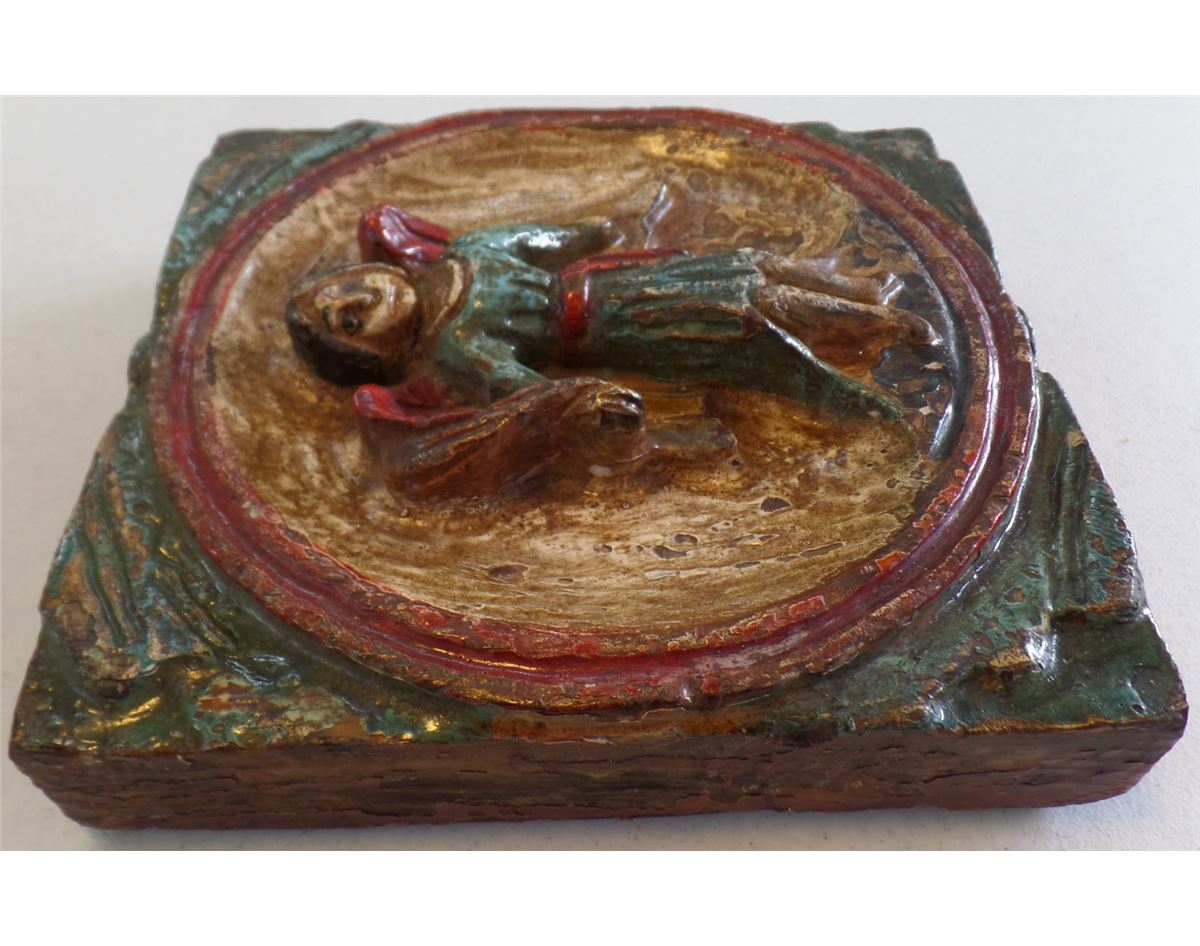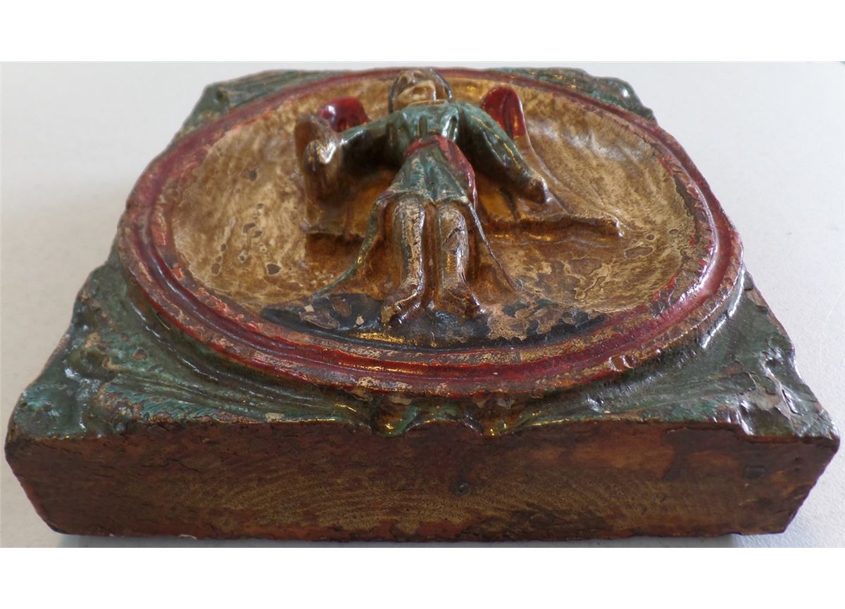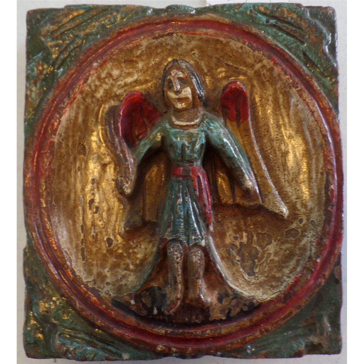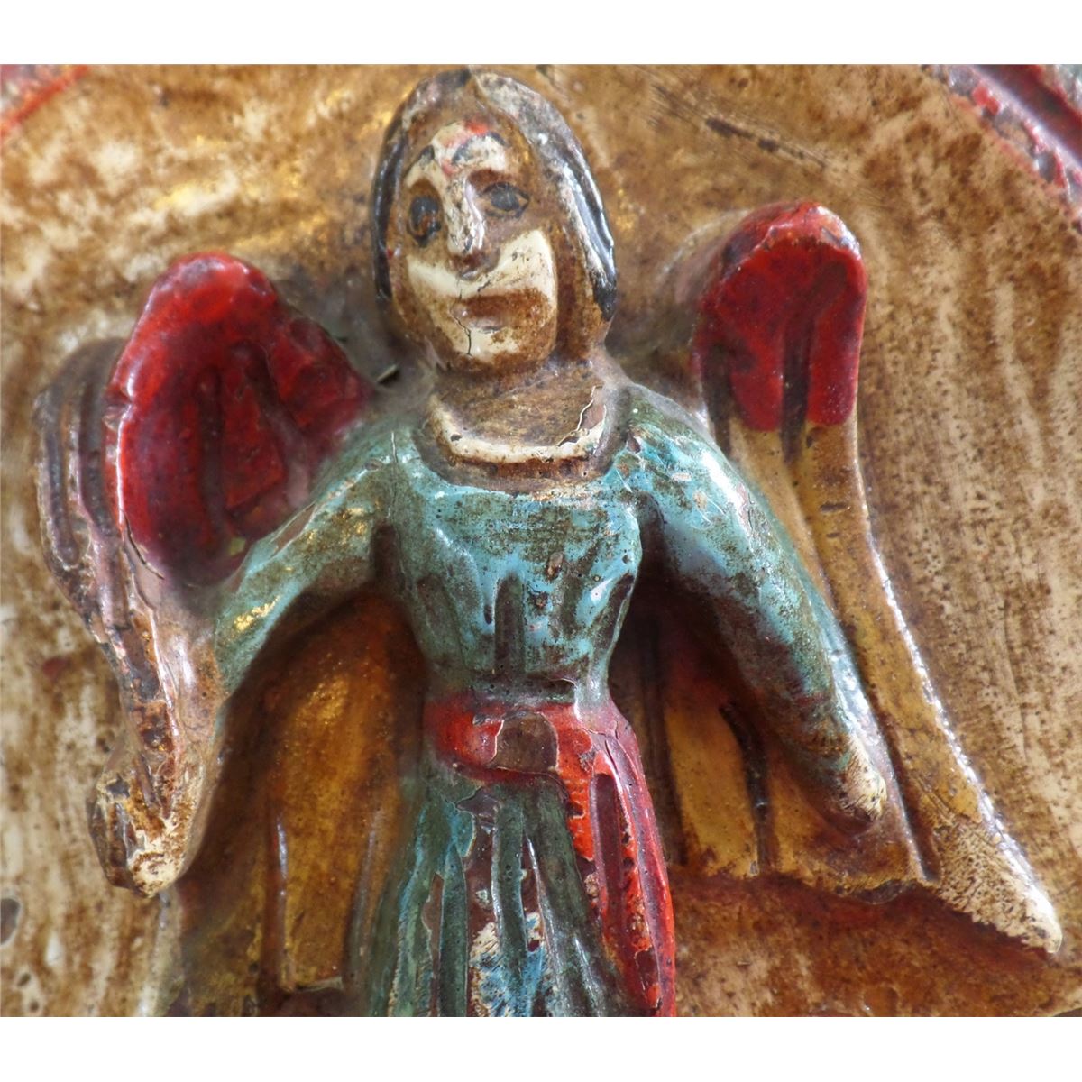 Spanish Wood Carving of Angel from the 1920's. This item measures 9 1/2 x 9 x 2 1/2 inches and has nicks, scratches and wear. This item is made from wood and paint. Shipping $20.00