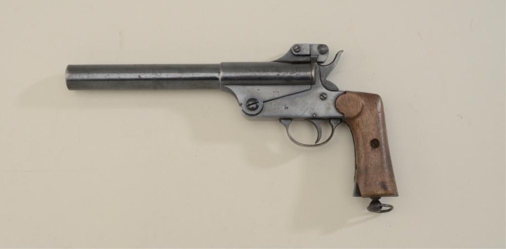Spanish flare pistol by Astra, Model 500 in overall very good condition with losses to the front toes of the wood grips, serial #838; with article on this scarce to rare example. Est.: $500-$1,000.