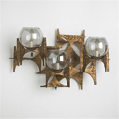 Spanish, light fixture, c. 1970, bronzed stee