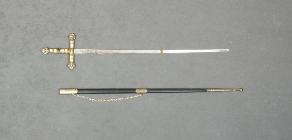 Spanish made copy of a Toledo Court dress sword in overall very good condition approx. 31” overall with an approx. 26” blade. Est.: $10-$20.
