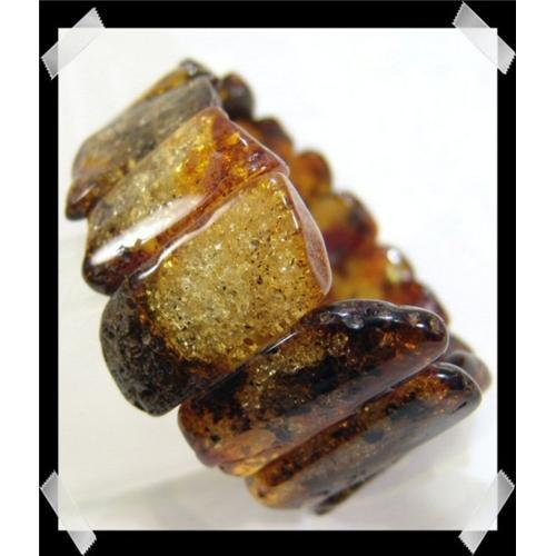 A very classical Baltic amber bracelet fashioned on two strong stretch cords for the ultimate in comfort. The genuine green amber stones are full of glorious inclusions. The bracelet has a height of 35mm with a gram weight of 29.<p>