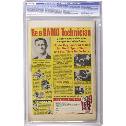 The utterly bizarre combination of Tarzan and Nancy was featured in this title -- thankfully it's the former character on this issue's cover, the bonus being that he's drawn by the great Burne Hogarth. Overstreet 2006 NM- 9.2 value = $610. CGC census 11/06: 1 in 9.2, 2 higher. <I>From the Crippen Collection.</B></I><BR><BR><b>Shipping:</b> Slabbed Comic (<a target="_blank" href="http://www.heritageauctions.com/common/shipping.php">view shipping information</a>)