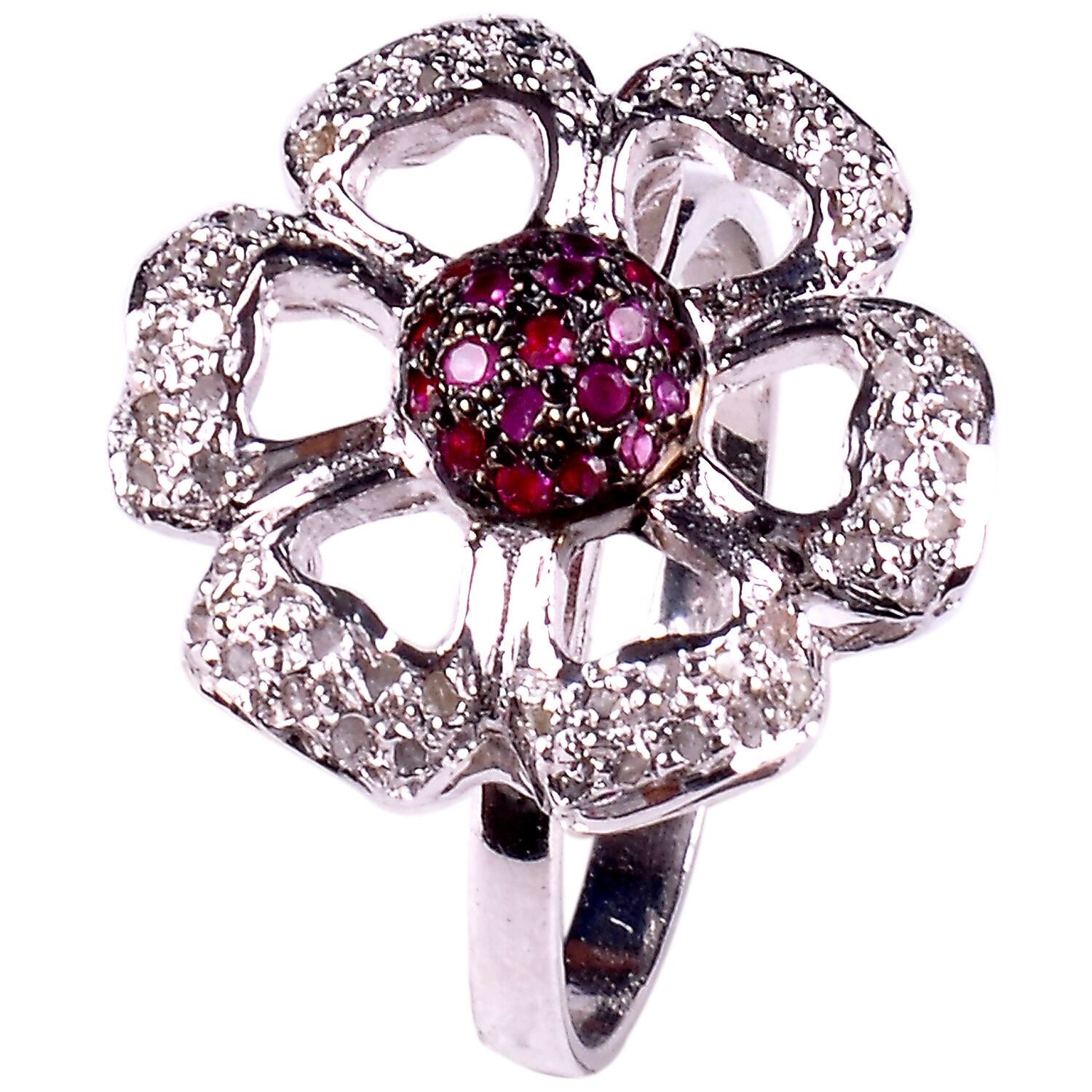 This beautiful diamond ring has 60 Natural Uncut White Diamonds and is complimented with faceted rose pink cz accent stones. All gems are Mounted in .925 solid sterling silver with 14 Kt White Gold Overlay, which gives the ring its high polish and shine. Size 7.5 and weighs 3.5 total grams. This ring so pretty!!!