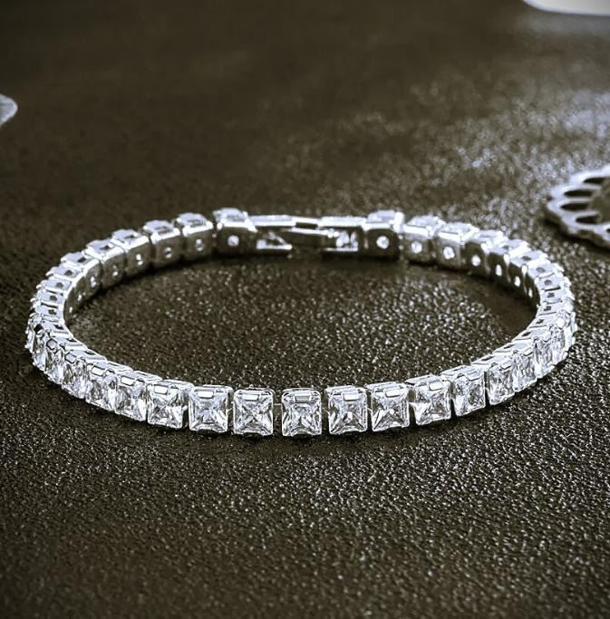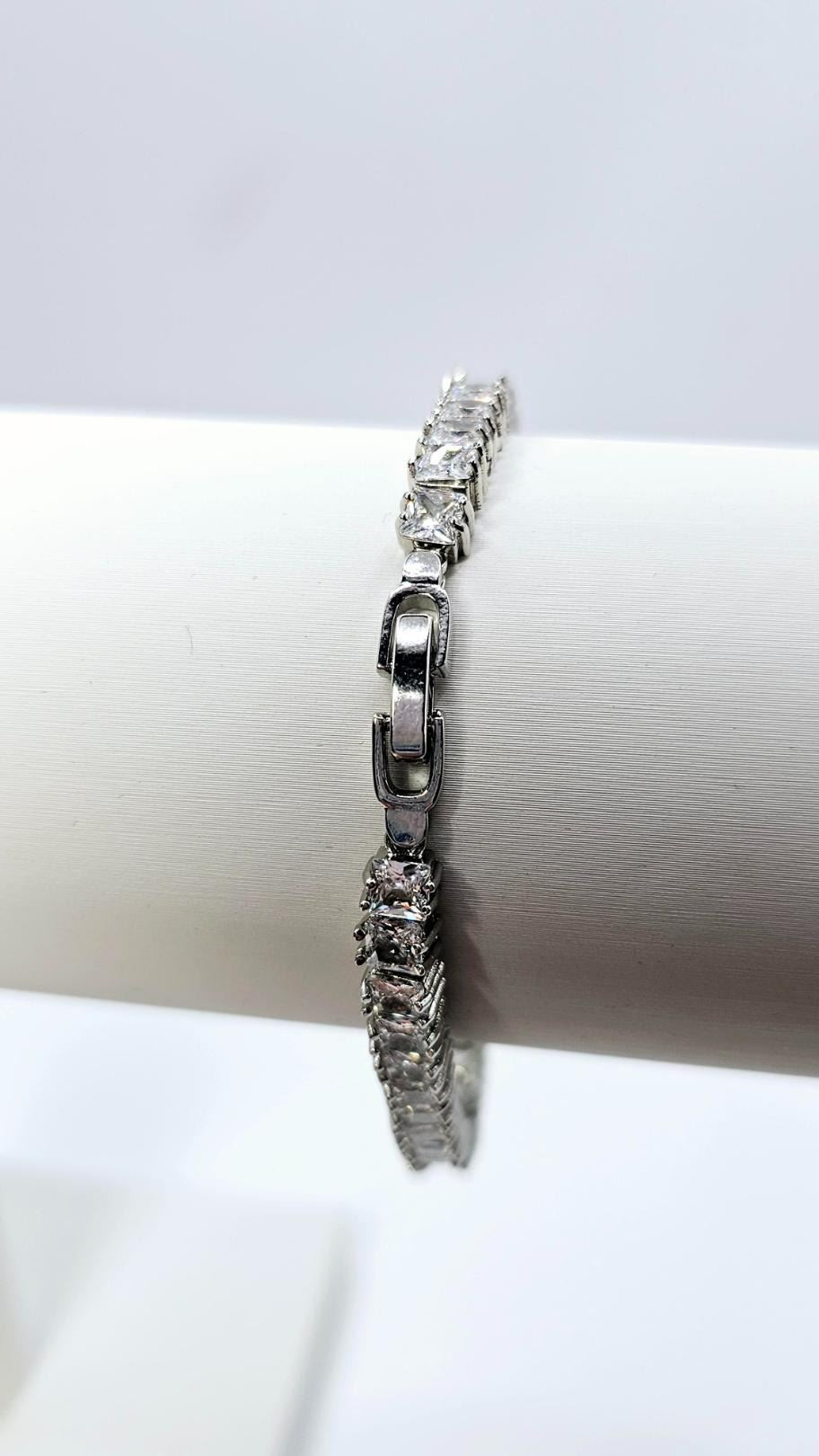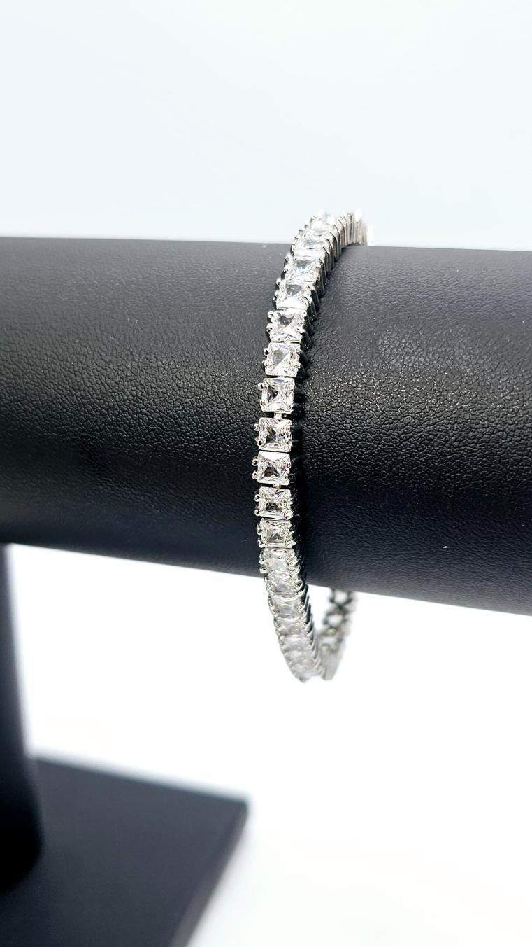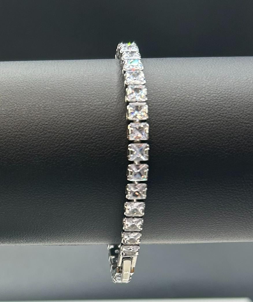 Sparkling 14 Kt White Gold Plated Simulated Diamond Tennis Bracelet