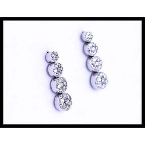 Sparkling earrings with 56 full cut diamonds that weigh approximately 1.50 carats set in 14K white gold. The diamonds are rated at G-H color and SI clarity. The earrings measures 22.1 millimeters (0.87 inches) long x 3.9 millimeters (0.16 inches) to 6.8 millimeters (0.27 inches) wide and weigh 4.20 grams total weight.