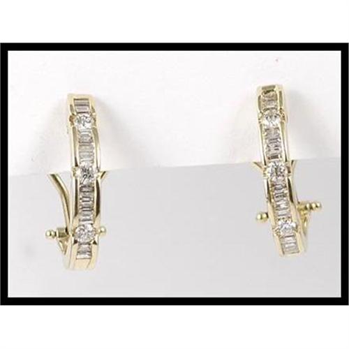 Sparkling earrings with 6 full cut diamonds and 26 tapered baguette diamonds that weigh approximately 0.50 carats set in 14K yellow gold. The earrings weigh 4.40 grams total weight.