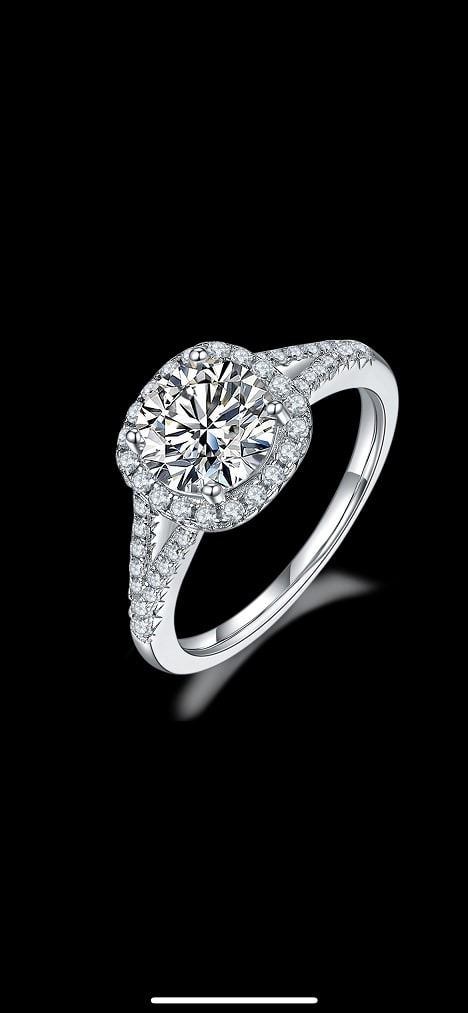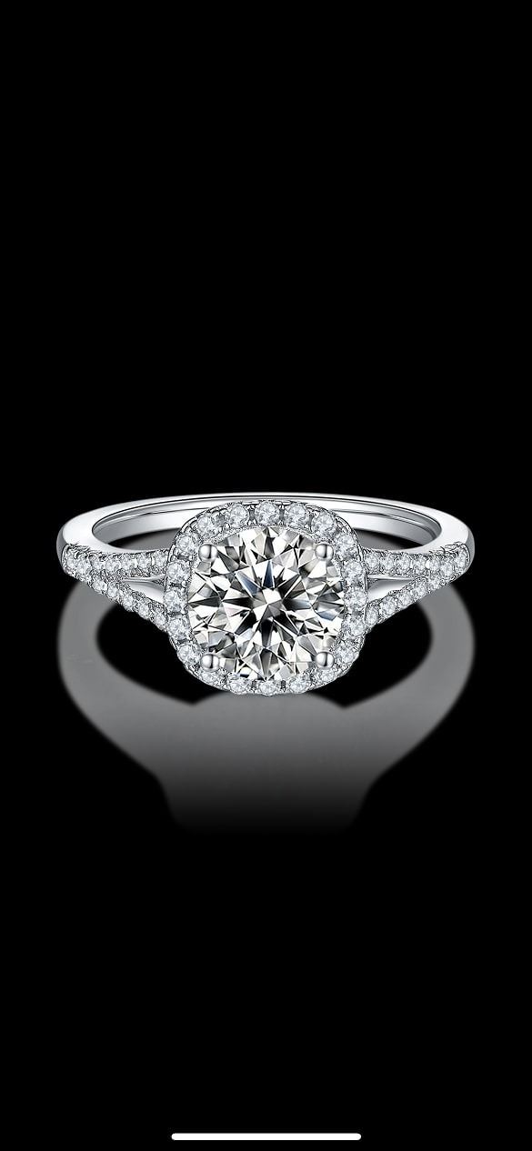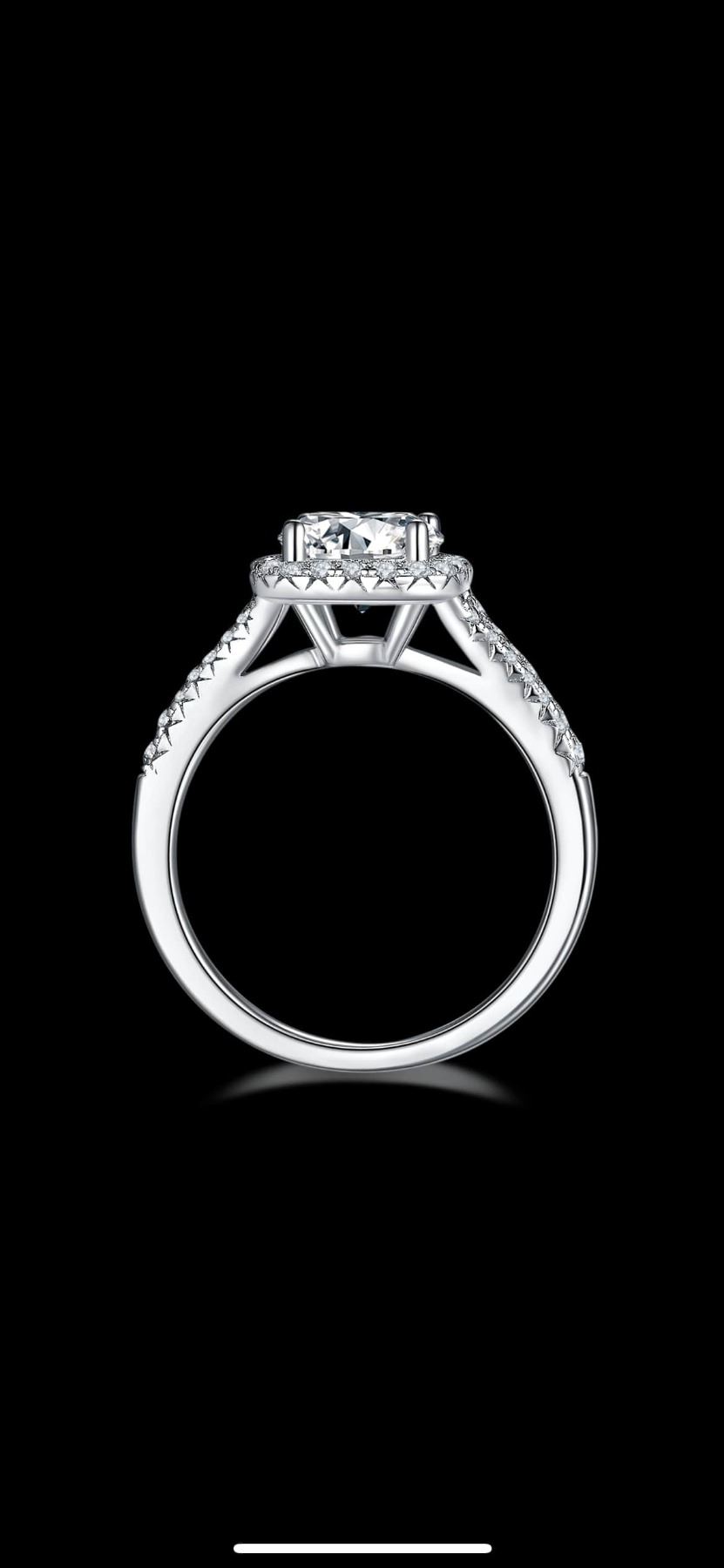 This Fire Moissanite is a VVS1 Brilliant Round Cut. The Color is F-G with a clarity of VVS-1. Measuring approx. 8 mm. This Fire Moissanite is near flawless and bursting out with a full spectrum of colors and adorned with cz accent stones. It is mounted in .925 solid sterling silver complimented 14 Kt White Gold Overlay, which gives the ring its high polish and shine. It is also tarnish resistant and a refractive index of 2.65-2.69, this Moissanite exhibits more brilliance than a natural diamond thanks to a dispersion that is 2.4 times higher. It is also conflict free and earth friendly. This exceptional Moissanite measures 9.25 on the mohs hardness scale and will test positive for a diamond with almost any diamond tester. Total weight of this ring is 3.6 grams. Ring size 7.