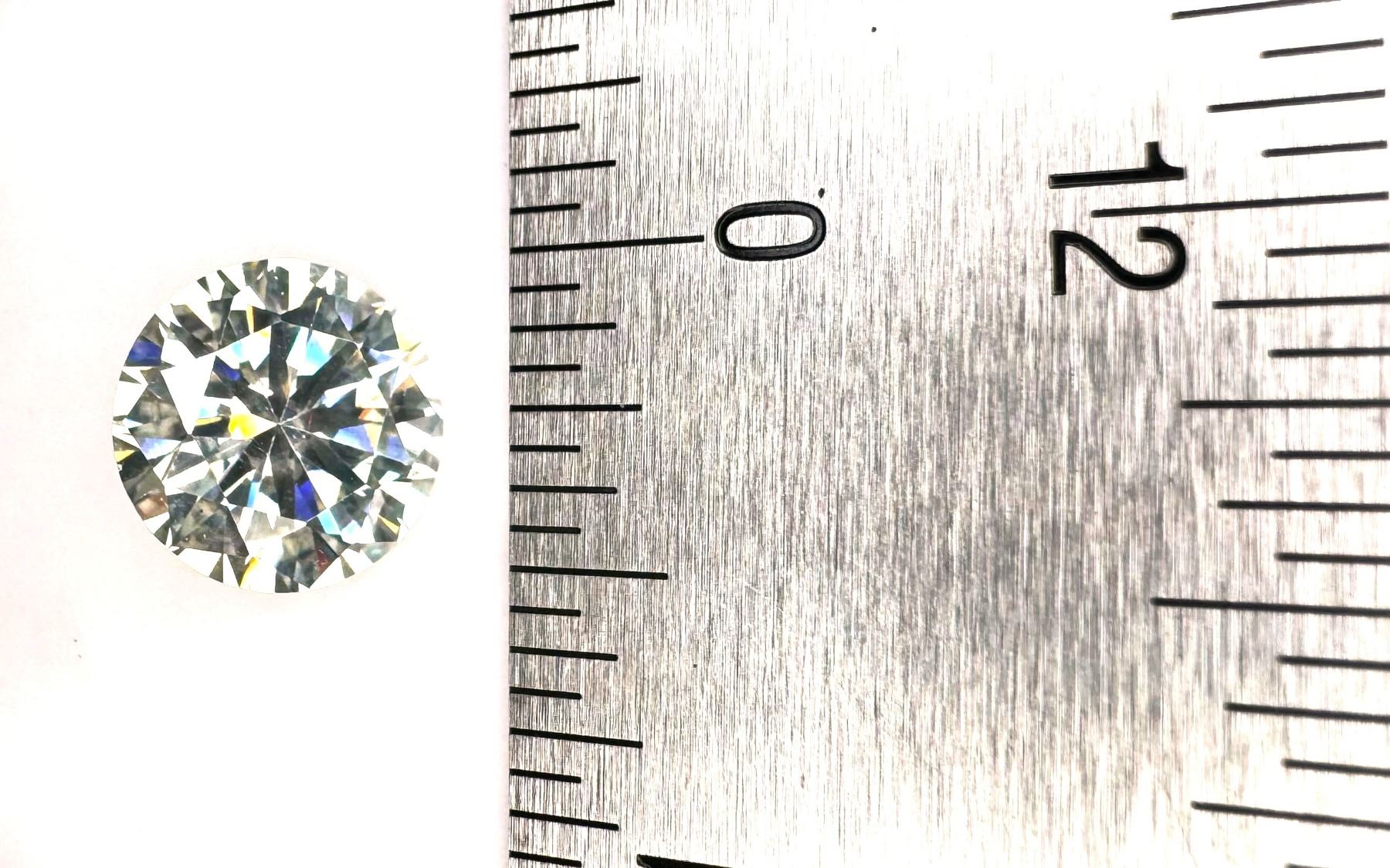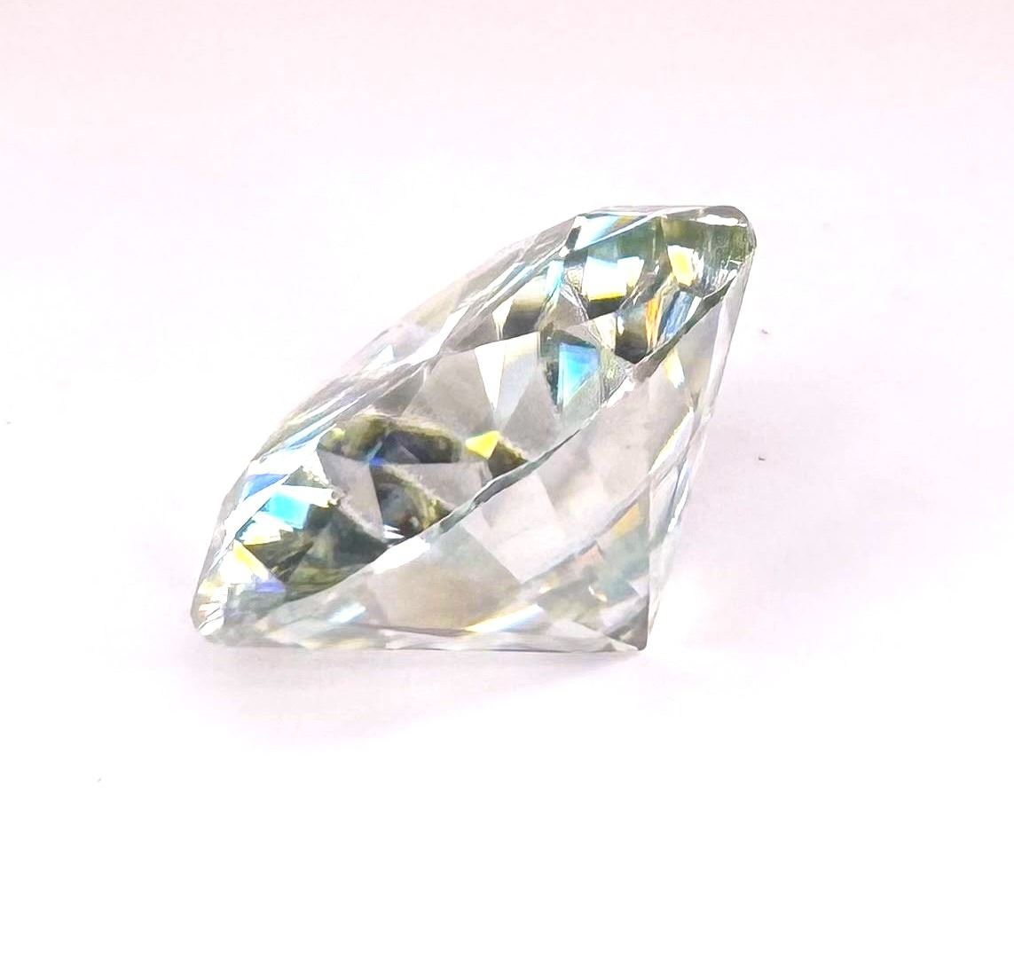 Sparkling Huge 8.26 Ct Brilliant Round Cut Fire Moissanite. This Fire Moissanite measures 13.4 mm. Color is White E-F. This Fire Moissanite is VVs1 eye clean and bursting out with a full spectrum of colors. With a refractive index of 2.65-2.69,Fire Moissanite exhibits more Fire and Brilliance than a natural diamond thanks to a dispersion that is 2.4 times higher. Plus it is also conflict free and environmentally friendly. This beauty is ready to mount.