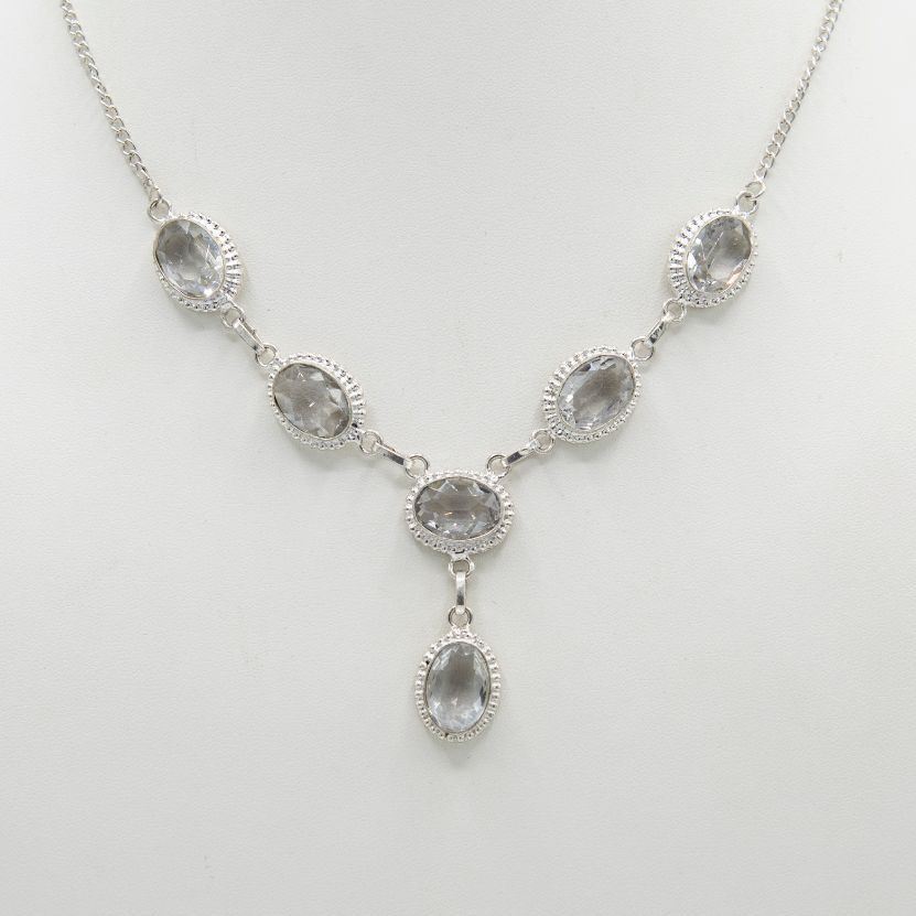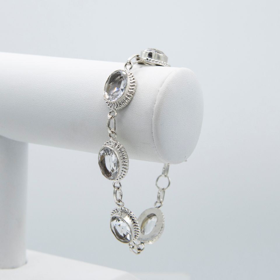 Sparkling Clear Quartz 4 Piece Jewelry Set. These faceted clear quartz are near flawless. They burst out with a dazzling sparkle and vivid even tone. The 4 piece set includes an 18 inch 6 single stone faceted necklace, bracelet, earrings and finger ring is adjustable. Mounted in .925 stamped sterling silver overlay. Total approximate weight of all pieces is 49 grams or 245 Cttw.