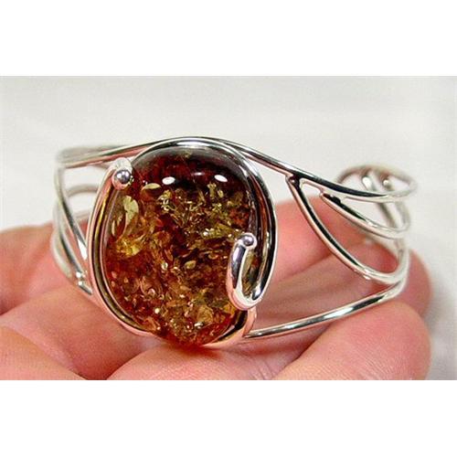 <tr><td>Title:Sparkling Green Baltic Amber Sterling Bracelet</td></tr>