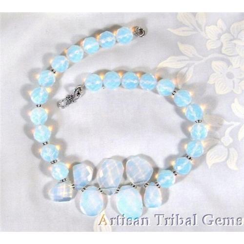 Gemstone Sterling Necklace featuring 14mm round fully faceted opalite gemstone beads and graduated from 30mm briolette center beads comlimented with