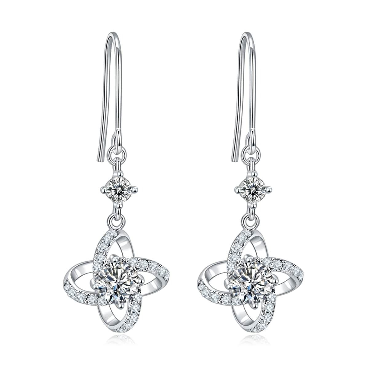 These Beautiful VVS1 Moissanite Earrings Are Near Flawless and bursting out with a full spectrum of colors. The Color is White I-J. They are mounted in .925 solid sterling silver. They are complimented 14 Kt White Gold Overlay, which gives these earrings their high polish and shine. They are also tarnish resistant and the total weight is approx.2.2 grams. With a refractive index of 2.65-2.69, this Moissanite exhibits more brilliance than a natural diamond thanks to a dispersion that is 2.4 times higher. They are also conflict free and earth friendly. These exceptional Moissanite earrings measure 9.25 on the mohs hardness scale and will test positive for a diamond with almost any diamond tester.